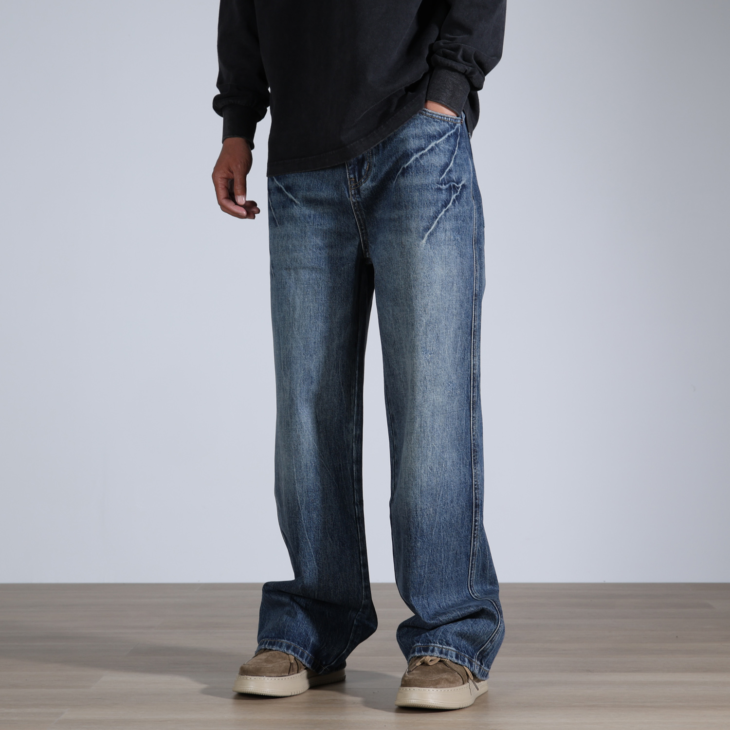 Non-stretchy Men’s Baggy Loose Jeans 100% Contton